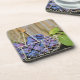 Uma cesta de fio de ameixas de ameixas roxas com folhas verdes.
