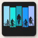 Este design desportivo apresenta um fundo vibrante e a silhueta dos ciclistas.