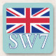 Londres, Inglaterra, código postal SW7. SW7 inclui a área sul de Kensington de Londres. Comemore sua vizinhança, distrito ou cidade de Londres com este design impressionante, igualmente caracterizando Union Jack em toda sua glória! Este design está disponível nas centenas de produtos, incluindo t-shirt, camisolas, hoodies e o outro roupa nas dúzias dos estilos, dos tamanhos e das cores para adultos e crianças. Também disponível em caixas do telemóvel, em bonés, em canecas, em bules, em frascos de biscoito, em toalhas de chá, e em muitos outros presentes para amantes de Londres e Anglophiles de todos os tipos. Design de Scarebaby dos direitos reservados do conceito de design.