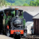 Um design fotográfico de um belamente restaurado trem verde a vapor.