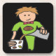 Barista design mostra a barista lançando cuidadosamente café quente numa caneca. Veste a gravata do arco, o logotipo sorridente do café e fornece a chamada matinal do acordar de café para o cliente.