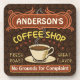 Estas portas copos com temática cafeeira são perfeitas para qualquer um que administra seu próprio compro de café ou tem um tema de café na decoração da cozinha da sua casa. Feito em castanho, laranja, bege e amarelo, este design de inspiração/espresso apresenta uma xícara em um disco, duas banners de texto personalizados e as palavras "Compro de café / Floresta fresca / Sabor de Excelente" em amarelo. A caneca está a vapor e a faixa de cima tem espirais que imitam a fumaça. Tudo repousa sobre um fundo escuro de grãos de café. Use as modelos para adicionar seu nome facilmente. Você também pode mudar o slogan inferior se quiser, que atualmente lê, "Sem Motivos para Reclamação." Se precisar redimensionar o texto para o ajustado, clique em "Personalizar." Pegue uma xícara de Joe e descanse em suas próprias portas copos de café.