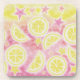Frutado, gasoso, doce e azedo... fatias de limão, bolhas e estrelas flutuam em limonada rosa. Conjunto de portas copos com um design personalizável cor-de-rosa, amarelo, laranja e branco para personalizar com seu próprio texto, imagens e ideias. Imagem criada de um lápis de cor original e desenho de tinta por Jess Perry.