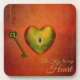 Ilustração maravilhosa e romântica com coração ouro e chave em um fundo vermelho estruturado. Dourada citação de amor do Script: "A chave para o meu coração".
