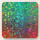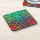 Multicores coram em fundo vermelho e verde.
