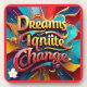 Um design vibrante com o texto "Dreams Ignite Change" em um admirável conjunto de cores, acentuado com toques de ouro que brilham como estrelas. A tipografia ousada é rodeada por abstrato e padrões giratórios, simbolizando a energia e o potencial da criatividade. Esta peça inspira os espectadores a abraçar suas aspirações e transformá-las em realidade."A Imagem Original foi gerada pelo Meta AI. A IA gerou trabalho de arte. Licenciado sob CC BY-SA 4.0.