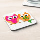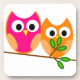 Porta-copo Corujas rosa e laranja, em árvore
