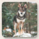 Costeira de bebidas Wolfdog. Lindo foto do Wolfdog Nox, parado em uma rocha, Bois de Vincennes, Paris, França. Foto de Tahoe Beetschen.