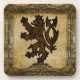 Leão desenfreado heráldico, montado na madeira cinzelada velha (simulada)