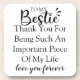 Este design oferece uma mensagem sincera e amorosa para o seu melhor amigo. Com a citação "Para minha Bestie, obrigado por ser uma peça tão importante da minha vida, te ama para sempre", é uma maneira perfeita de expressar sua gratidão por sua amizade. É um lembrete do vínculo persistente e do impacto duradouro que ela tem na sua vida... Presentes exclusivos de amizade para mulheres Namorados de Natal amigas Dias de as mães