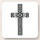 Uma Cruz Celta composta de uma cruz preta e um anel branco, ambos em designs celtas.