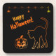 Porta-copo Curioso Gato Negro e Halloween Jack-o-Lanterna