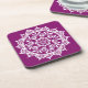 Esta mandala branca senta-se sobre um fundo roxo quente. A cor é luxuosa e criativa. Parte da coleção Brosya Mandala.