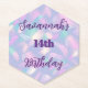 Celebre seu aniversário de 14, em estilo, com essas portas copos hexagonais iridescentes! Apresentando um design pastel roxo e ximerso, essas portas copos adicionam um toque de magia a qualquer festa. Perfeito para bebidas, essas portas copos duráveis protegerão suas superfícies enquanto adicionarão um toque personalizado. O padrão iridescente único e a escrita elegante fazem destas portas copos uma lembrança memorável do seu dia especial. Adicione um pouco de brilho à sua celebração com estas portas copos de um tipo.