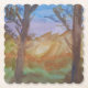 À medida que o sol se põe atrás das árvores, a floresta está inundada de luz ouro. A cor desaparece do céu e sombras de crepúsculo se juntam entre as árvores. Esta é uma espantosa cor d'água original das árvores do pôr do sol que irá adicionar cor macia a qualquer quarto na sua casa.