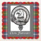 Brasão do Clã Forrester Escocês em cinza sobre um fundo xadrez do clã
