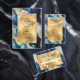 Uma porta copos com ouro falso, design marmoreado azul e branco.