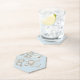 Uma porta copos retrorreflectora com cinzas e círculos brancos sobre um fundo azul claro.