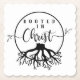 Enraizado no Cristo, este design apresenta um design preto e branco com raízes de uma árvore e texto dizendo "Enraizado no Cristo".