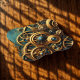 Dourado relógio brilha contra um fundo teal neste elegante design de boia-palha trazendo um sentido industrial vívido à arte moderna.