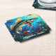 Este design moderno divertido tem um pique colorido de walleye nadando em um belo lago azul num dia ensolarado.