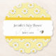 This baby shower paper coaster with a "mother-to-bee" theme comes in lots of fun shapes. It's designed with a simple border of daisy flowers in yellows, with a cute little bee accent. Text is pre-formatted front and ready for your own edits. Coordinates with baby shower invitation and other party items in this same collection.