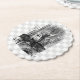 Grupo de 6 portas copos descartáveis scalloped redondas do conselho da polpa com um vintage com a imagem do espelho de Alice que ajoelha-se na cornija de lareira da lareira, espreitando no espelho em um tabuleiro de damas cinzento e branco. Guardanapo de harmonização do cocktail da porta copos e do papel do arenito See. Veja a coleção inteira da porta copos do país das maravilhas na seção das portas copos de FOOD/BEV |.