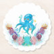 Este elegante design apresenta um rapaz do Mar do Oceano, Octopus, segurando um sábio e verde conchas, enquadrados com uma bela cor d'água, colorido do mar