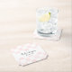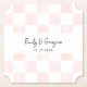 Add a personalized touch to cocktail hours and more with these custom coasters. The paper coasters have a pink and white checkerboard background featuring painted pastel pink squares. They are ready to be personalized with names and wedding date.