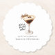 Um expresso martini mostra que o convidado de honra é "um tini um pouco mais velho." Paleta sofisticada de cores neutras. Martini com arco e feijão expresso.