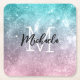 Porta-copo De Papel Quadrado Abstrato Monograma de galáxia verde-rosa-rosa