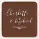 Porta-copo De Papel Quadrado Boho Brown Script Minimalist Wedding