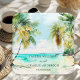 Esta elegante e bela porta copos de casamento com aquarelas mostra uma praia, céu azul e palmeiras. O texto combina o script manuscrito e as fontes sans serif para uma aparência na moda e moderna. Isto é perfeito para uma praia de verão ou um casamento de destino tropical.