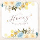 Proteja suas superfícies com estilo com nossas portas copos de "Noiva-a-Abelha". Essas portas copos são perfeitas para um chá de panela com tema de abelhas, com um pente de mel e um adorável design de abelhas, junto com flores azuis e brancas e abelhas buzinas.