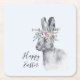 Coelhinho de cinza bonito com ilustração da coroa floral e texto de Felz pascoa personalizável sobre fundo azul pastel