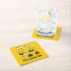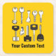 Um conjunto de teclas pretas e brancas com texto personalizado sobre fundo amarelo.