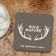Portas copos com uma ilustração de veados castanhos e um texto totalmente personalizável: "Natureza Selvagem" em estilo rústico sobre fundo castanho! Adicione um toque da natureza selvagem aos seus cocktails com amigos ou familiares!