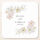 Porta-copo De Papel Quadrado Flores de Aquarela Creme e Rosado