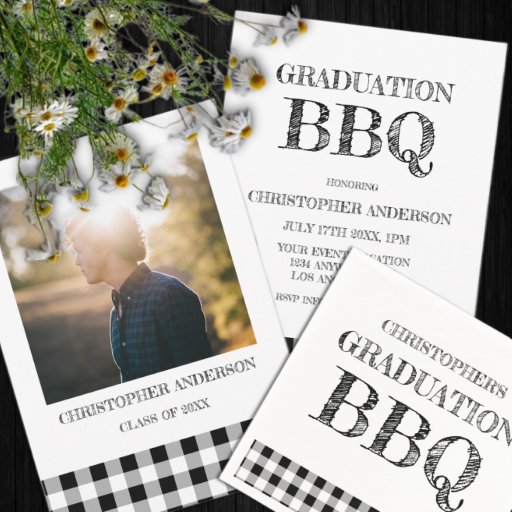 Porta-copo De Papel Quadrado Graduation BBQ Gingham