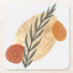 Um design de bolor inspirado em formas simples em cores rústicas de castanho, bege e e laranja com um pedúnculo vegetal floral como foco.
