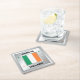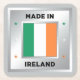 A square design featuring the Irish tricolour flag. There are decorative stars on either side of the flag, and are coloured in the shades of the tricolour flag. The design elements are situated on a faux silver background.