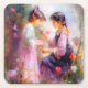 Uma pintura gerada por IA de duas meninas admirando flores em um jardim.