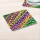 Grupo de ` descartável de 6 portas copos do conselho quadrado da polpa com uma imagem festiva de colares roxas, verdes e do ouro do carnaval do grânulo. See que combina a porta copos e guardanapo plásticos. Veja a coleção inteira da porta copos do carnaval na seção das portas copos de FOOD/BEV |.