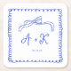 Porta-copo De Papel Quadrado Monograma de Casamento Azul Francês Desenhado à Mã
