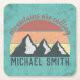 As montanhas de pastéis de safra chamam de design personalizável monograma. Desenho de uma montanha de neve com linhas de cor pastel em amarelo, laranja e vermelho representando o céu do pôr do sol. Acima do círculo céu está um ditado que montanhas estão chamando e debaixo das montanhas há um monograma onde você pode adicionar seu nome. Perfeito para os entusiastas da natureza e caminhada.