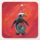 Porta-copo De Papel Quadrado Pinguim no Chapéu de Santa em Vermelho