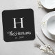 Porta copos preta monogramada moderna com seu nome em um roteiro branco-na moda. Acrescente uma inicial e o ano estabelecido na tipografia branca elegante.
