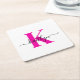 Porta-copo De Papel Quadrado Preto Rosa Quente Nome Inicial Monograma