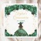 Esta elegante e glamourosa porta copos de aniversário da Quinceañera apresenta uma bela princesa com cabelo escuro num vestido verde escuro de bola. O texto combina o script manuscrito e as fontes sans serif modernas para um aspecto elegante e sofisticado. Os arranjos florais e o confete de ouro criam a mistura perfeita de rústicos e quicos. Gráficos por www.etsy.com/uk/shop/SunflowerDayLove