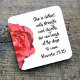 Proverbs 31:25 diz que uma mulher cristã ideal é vestida com dignidade, o que significa confortável no momento atual, e preparada para os próximos dias. Esta porta copos verso Bíblia floral é um lembrete excelente às mulheres na sua igreja que Deus nos criou capazes de lidar com o que ele nos manda. É uma porta copos cristã excelente mostrar uma mulher confortável ou encorajar outras mulheres a se aproximarem da mulher cristã ideal. Esta porta copos de afirmação cristã mostra metade de uma fotografia rosa vermelha ao lado das palavras de uma passagem de escritura favorita: Provérbios 31:25. É fácil personalizar o texto para ser um presente único ou porta copos cristã motivacional. "Ela está vestida com força e dignidade; ela pode rir dos dias que se avizinham."
